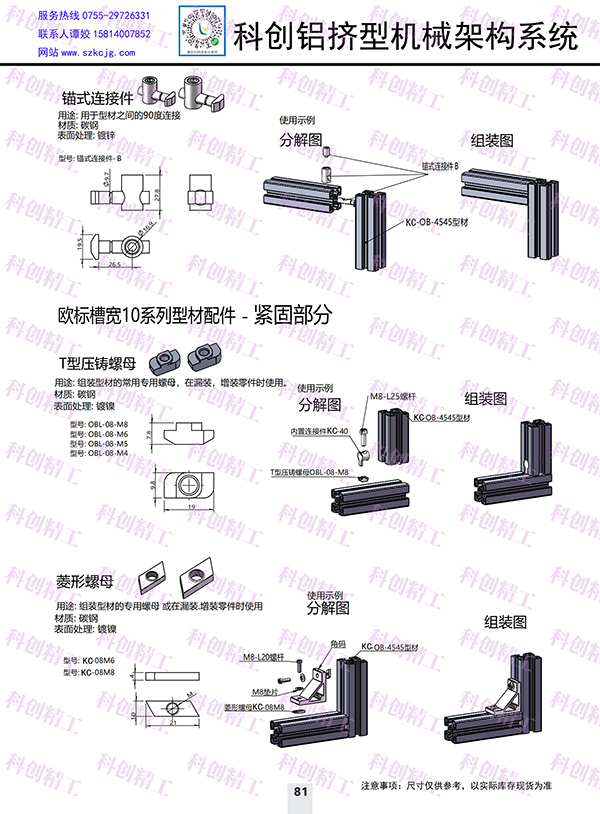 欧标10槽宽系列型材配件-紧固部分